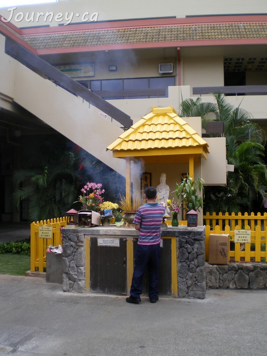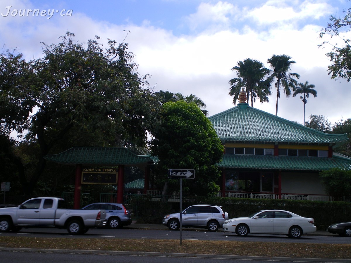 檀香山观音庙是夏威夷最古老的华人佛寺,始创于1878年,比孙中山还要早一年落户夏威夷。观音庙现有建筑则是近年来重建的,和台湾的圆山大饭店一样采取所谓“中国北方宫殿式建筑”风格。观音庙时常举办佛教活动,包括免费素食等,游客也可参与。