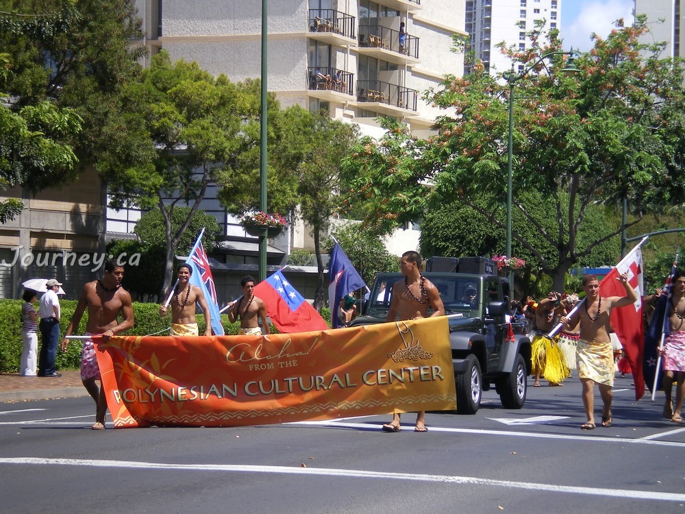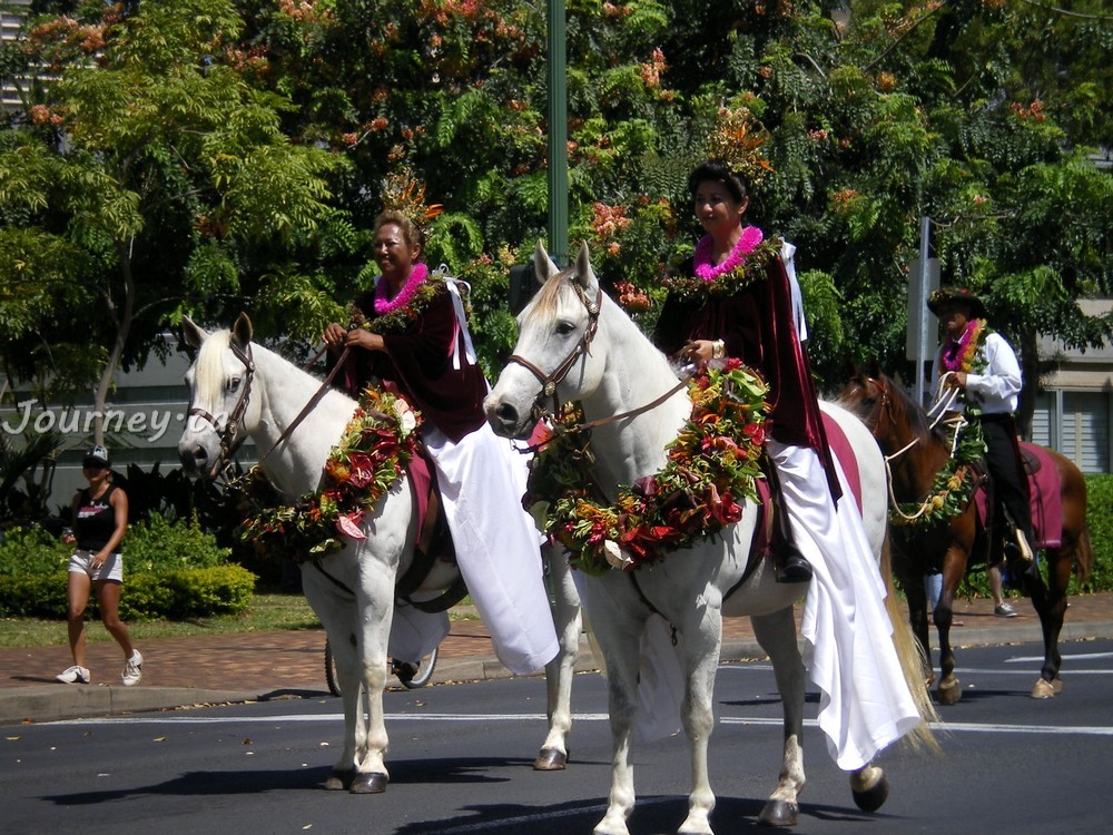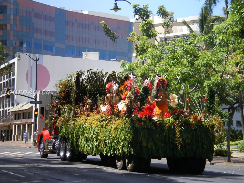 On the island of Oahu, the parade takes a route beginning at King Street fronting ‘Iolani Palace. Participants will then head down Punchbowl Street, before making a left on to Ala Moana Boulevard and eventually Kalākaua Avenue. The parade comes to a finish at Monsarrat Avenue and Queen Kapi‘olani Park.