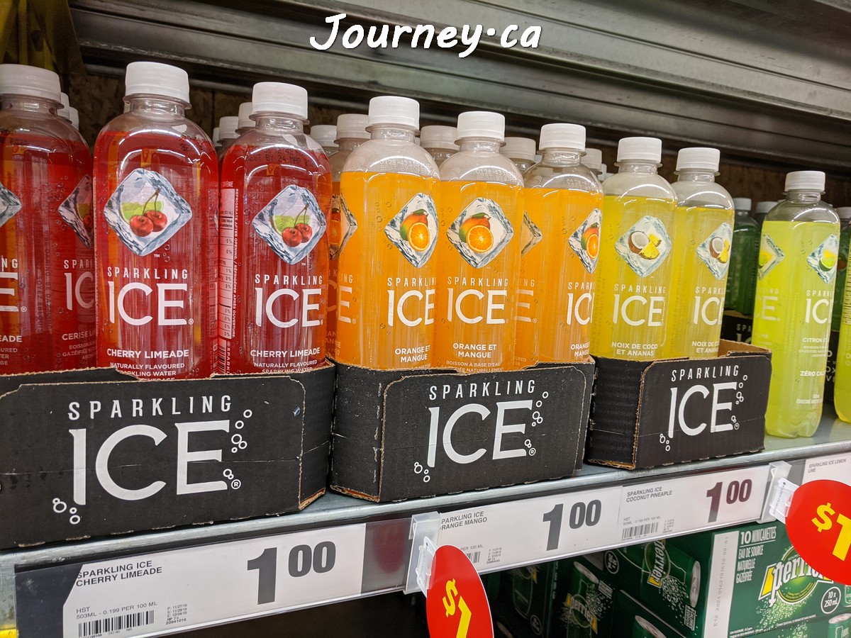 果味气泡天然矿泉水1公升:1加元。泉水水源地:加拿大魁北克。