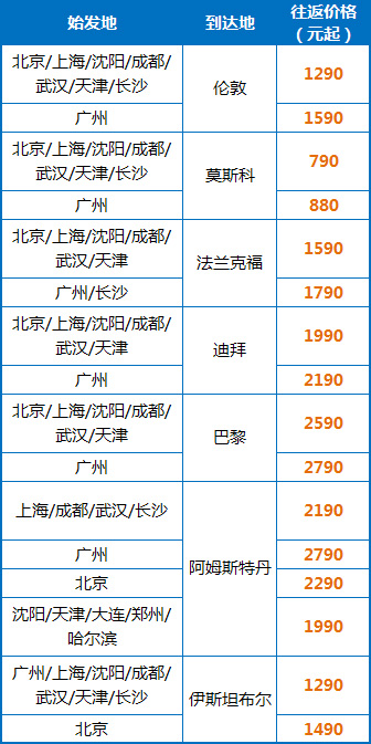 南航国际往返790元起,只限11.18