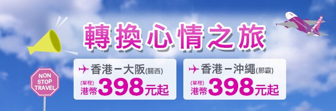 香港-大阪(關西) 港幣398 元起