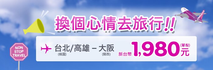 台北(桃園)-大阪(關西) 新台幣1,980 元