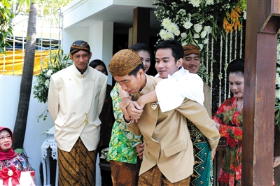 印度尼西亚总统佐科·维多多的长子吉卜兰11日在老家梭罗市迎娶相恋多年的选美冠军塞尔薇·阿南达。婚礼从筹备到举办,“第一家庭”自己动手,不租酒店,不坐婚车,不铺张,不收礼。约4000名民众获邀参加婚礼,更显“佐科维”亲民作风。