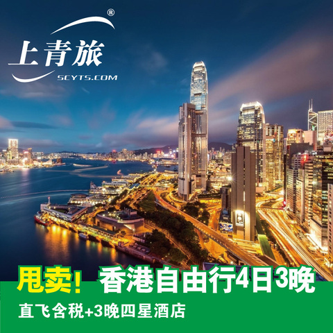 1699元,上海至香港自由行4天3晚(直飞含税+3晚四星酒店)