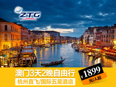 1899元,杭州直飞澳门3天2晚自由行周六出发 朝去晚回 全程喜来登五星酒店