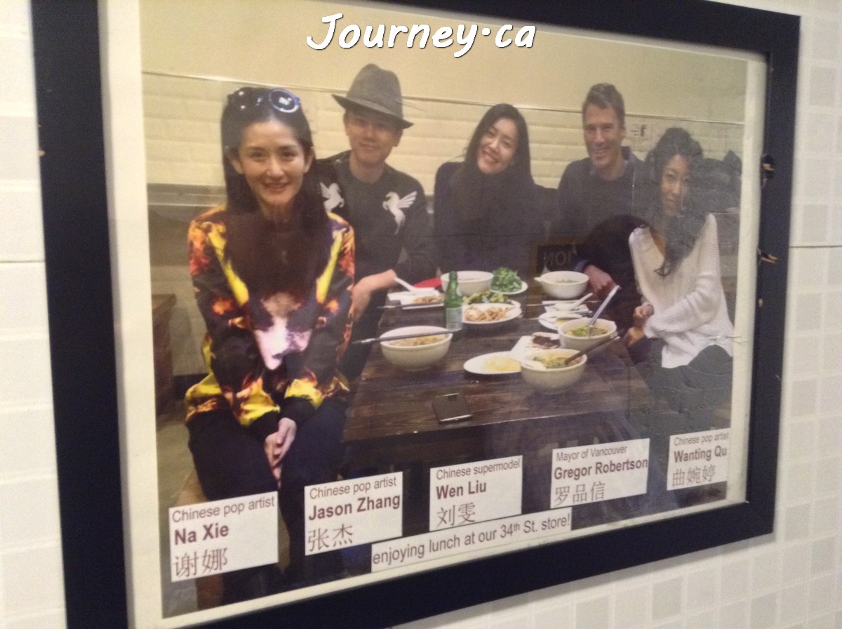 西安名吃的老板Jason Wang(中文名叫王梦迪)(曾经?)是超模雎晓雯的男朋友,所以店内自然也少不了名人就餐照。