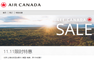 Air Canada 11.11 Sale 北京/上海出发至加拿大/ 美国/ 南美,享10%优惠! Flights to Beijing/Shanghai, 10% OFF Coupon: 2017DOUBLE11 预订链接