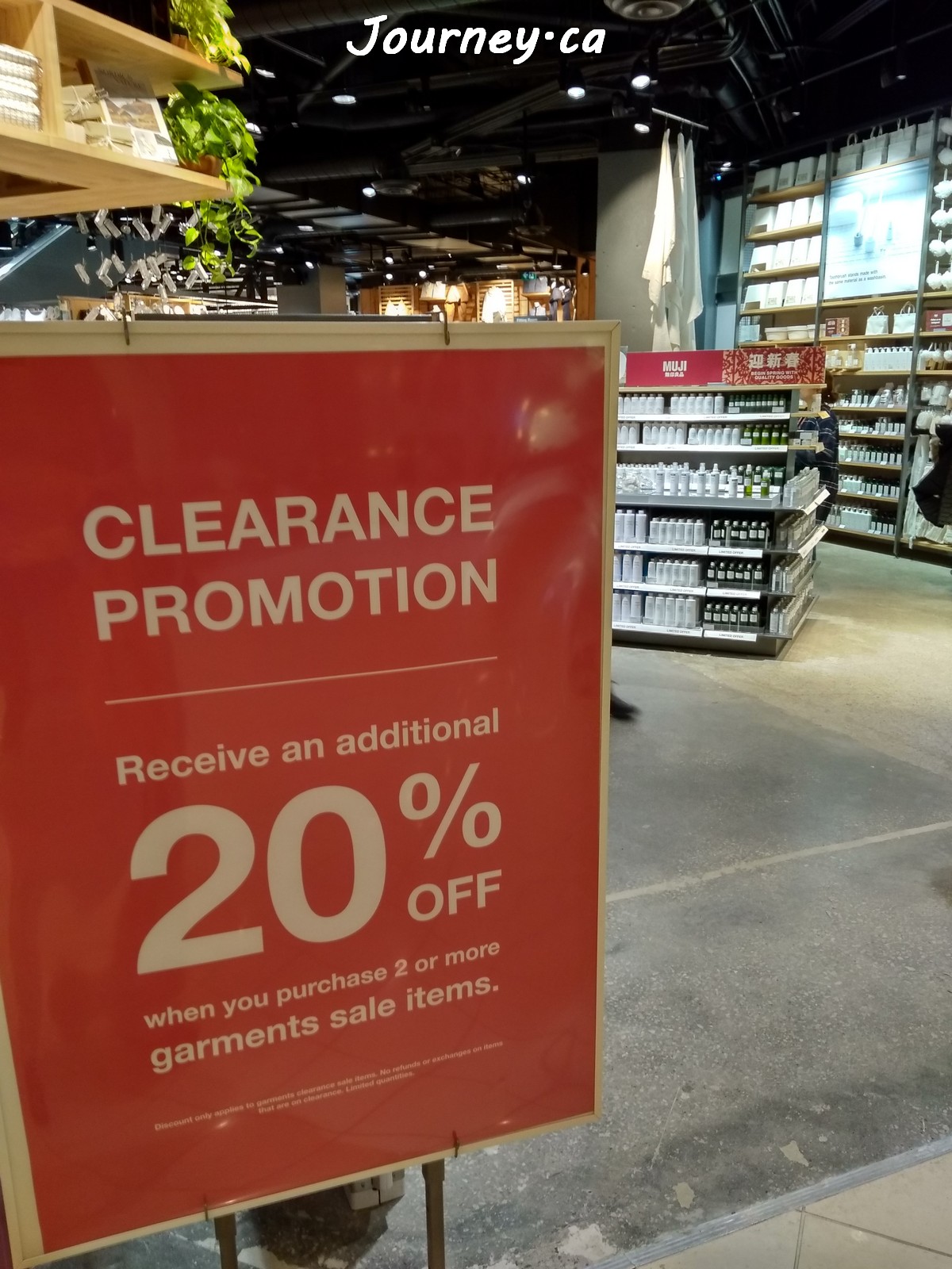 加拿大无印良品最给力的促销就是春节大促,买两件特价服装享额外20%折扣。