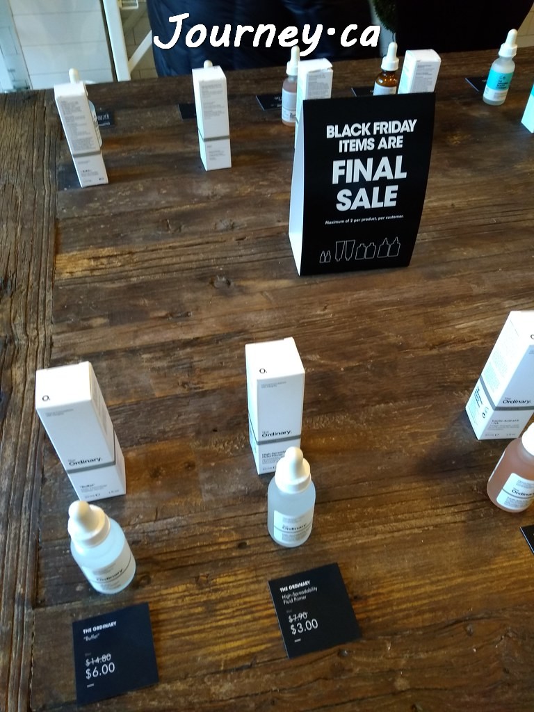 DECIEM平日供不应求,没什么促销,黑色星期五更是全天停业(实体店和网店均不销售),但11月全月会有77折大促。网上大促通常很快售罄,但是多伦多各分店内的促销品不断货供应。DECIEM近来在天猫开了旗舰店,点这里逛逛吧。