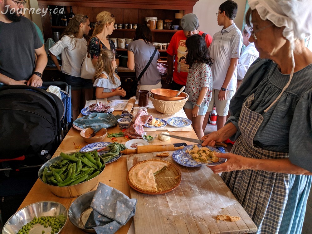 约克堡的厨房这一天特别忙,厨师们遵循按照古法制作当年英军士兵们常吃的菜肴,免费招待士兵和游客。也有工作人员为大家讲解厨房的使用。