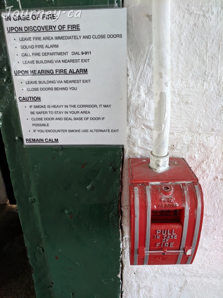 当日发生了一个小插曲:有名妇人游客出门时用力拉起了火警,导致全体人员被疏散、停止参观,直到消防员赶到后确认没有起火才解除警报。有游客向工作人员表示看到有人误拉火警,但约克堡工作人员还是谨慎的要求必须等消防员确认安全才行。所以大家千万不要乱拉警报呀。我自己当日是亲眼看到中国老人直接推门闯入门口有“Staff Only”标牌的更衣室,被赶出。