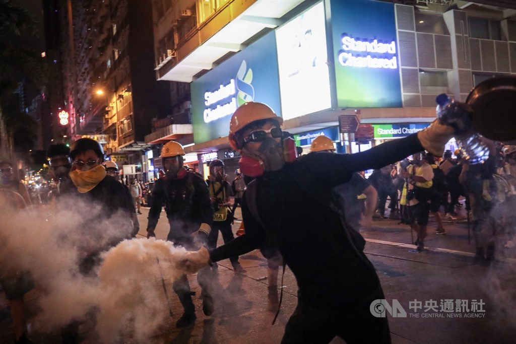 部分示威者眼見尖沙咀抗爭行動遭到警方壓制,又轉移陣地趕往葵涌警署,同樣上演催淚彈與鐳射筆相互對峙的局面,截至發稿為止仍未緩解。(編輯:邱國強/林克倫)