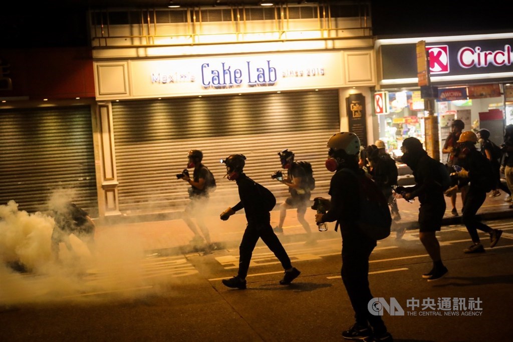 (中央社台北10日電)香港反送中大埔示威者今天下午轉進大圍,並在車公廟路與美田路的大圓環路口設置路障,防暴警察到場後,立刻密集發射催淚彈驅離。同一時間,沙田和紅磡海底隧道口都有示威者堵路。