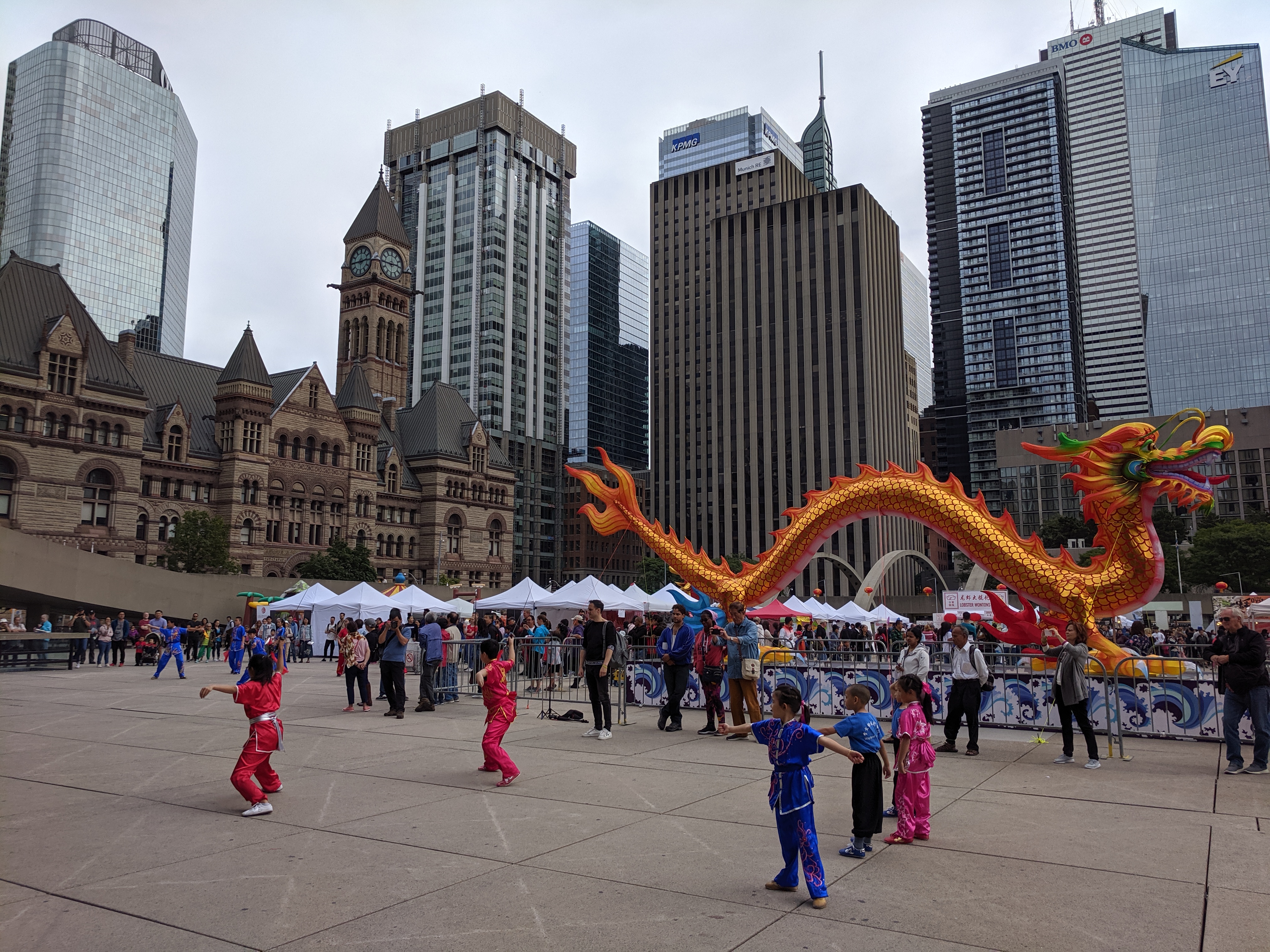 夏日的多伦多每个周末都有好几个街头盛会。2019多伦多龙文化节尽管只是第2届,但已经奠定其作为多伦多最高水准街头盛会的地位,其最大亮点就是舞台表演的丰富多彩。多伦多其他街头节日以乐队演出为主,但龙文化节以舞蹈为主,兼具戏曲、乐团、服装走秀、杂技、武术等多种表演形式,精彩程度相当于一台央视春晚。