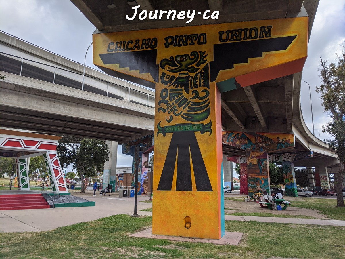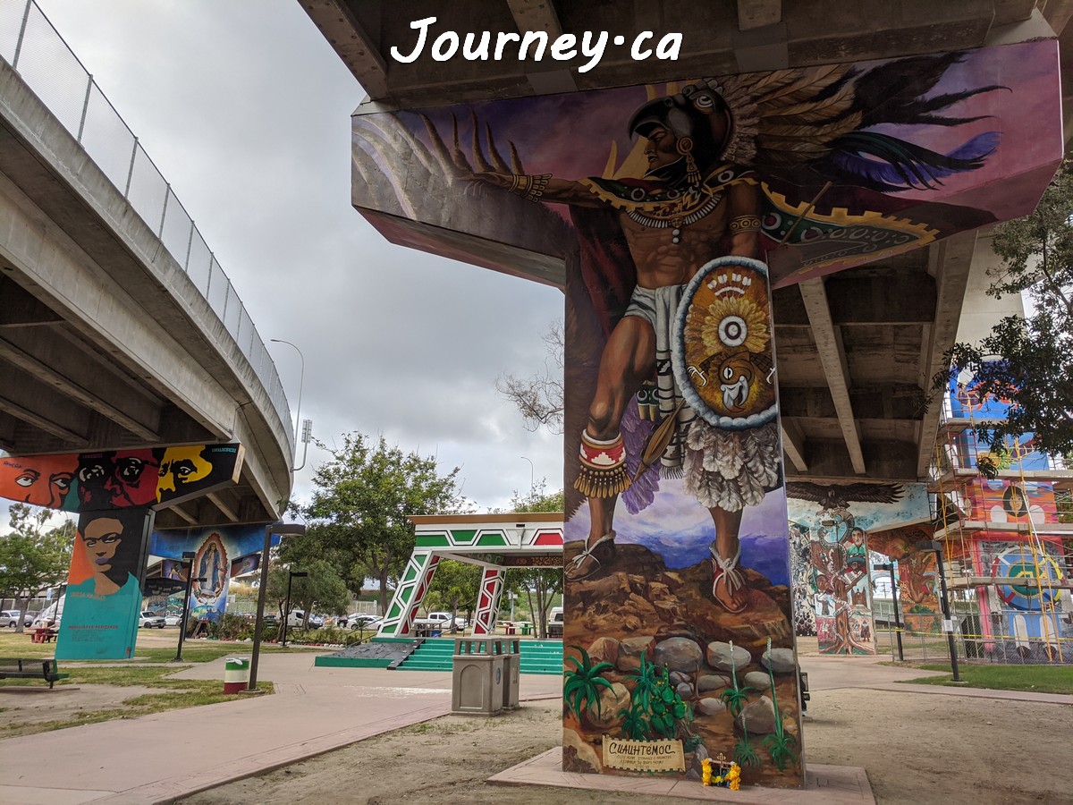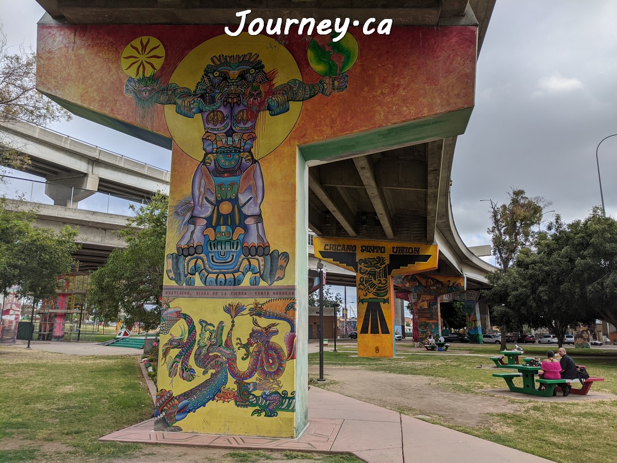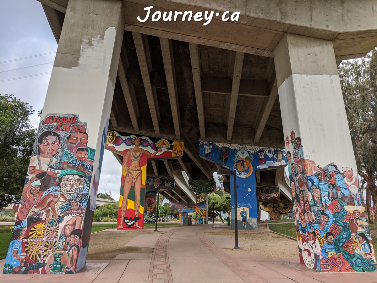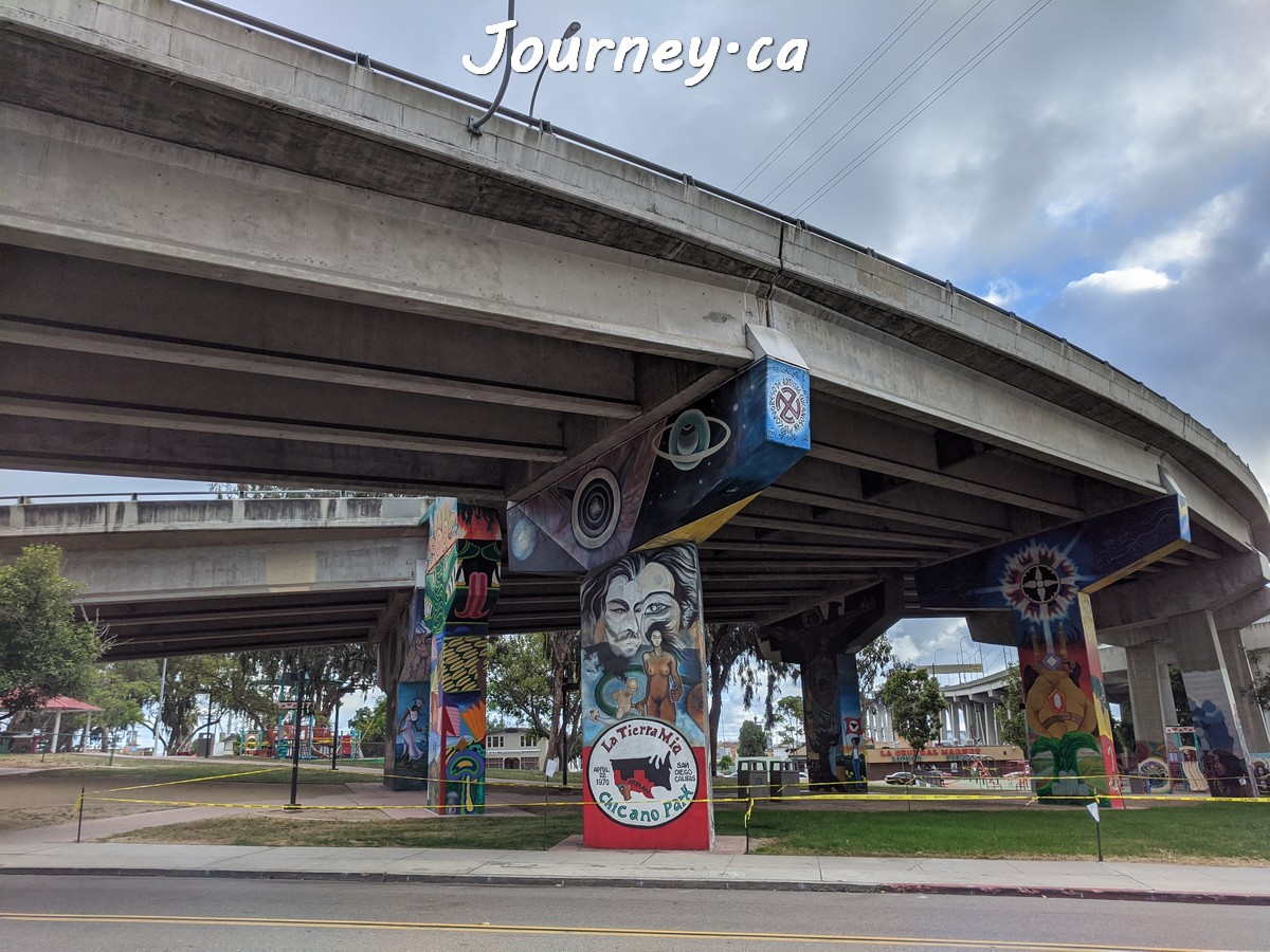 Chicano Park(齐卡诺公园)是美国国家历史地标之一,位于加州圣迭戈-科罗纳多大桥桥头下,以显眼的大幅壁画出名,壁画内容主要反映墨西哥、拉美以及奇卡诺文化。这里是墨裔美国人(奇卡诺人)争取平权的一个标志性地点。