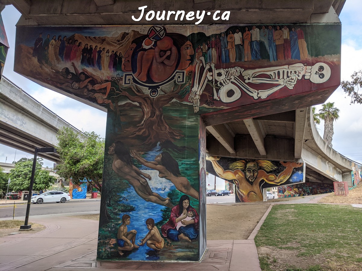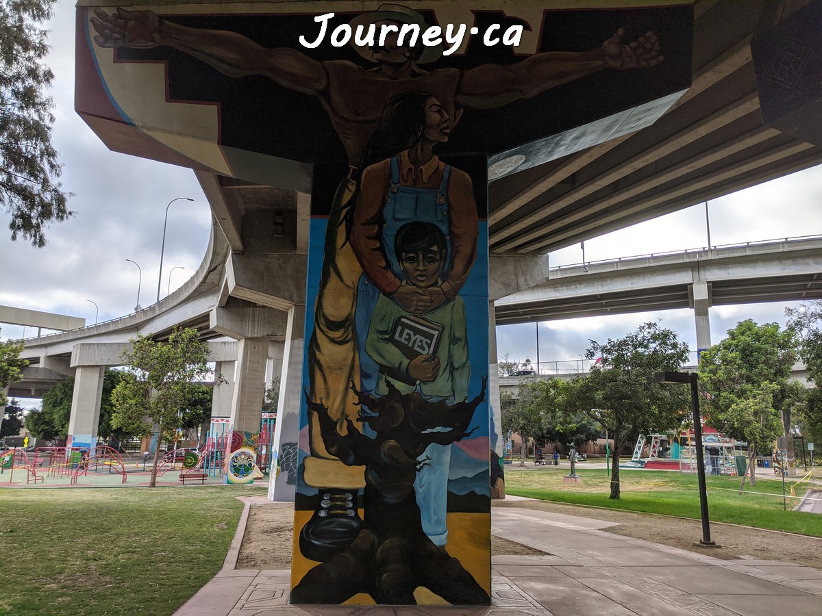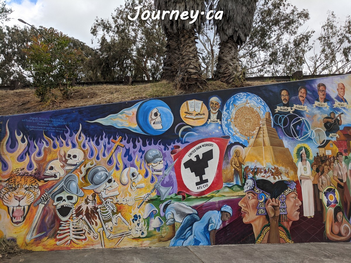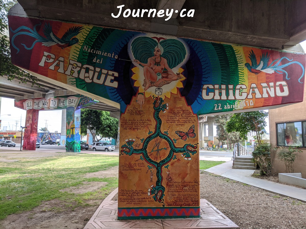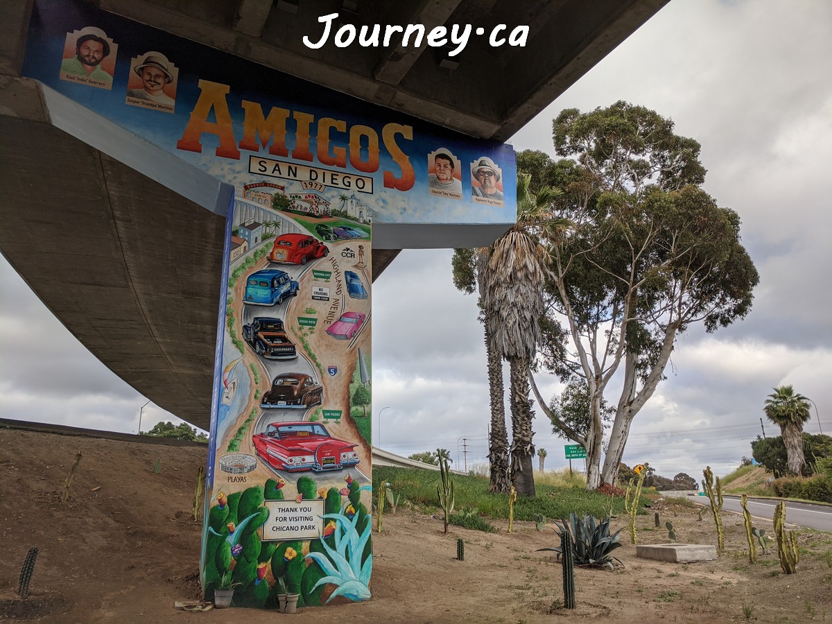 Chicano Park(齐卡诺公园)是美国国家历史地标之一,位于加州圣迭戈-科罗纳多大桥桥头下,以显眼的大幅壁画出名,壁画内容主要反映墨西哥、拉美以及奇卡诺文化。这里是墨裔美国人(奇卡诺人)争取平权的一个标志性地点。
