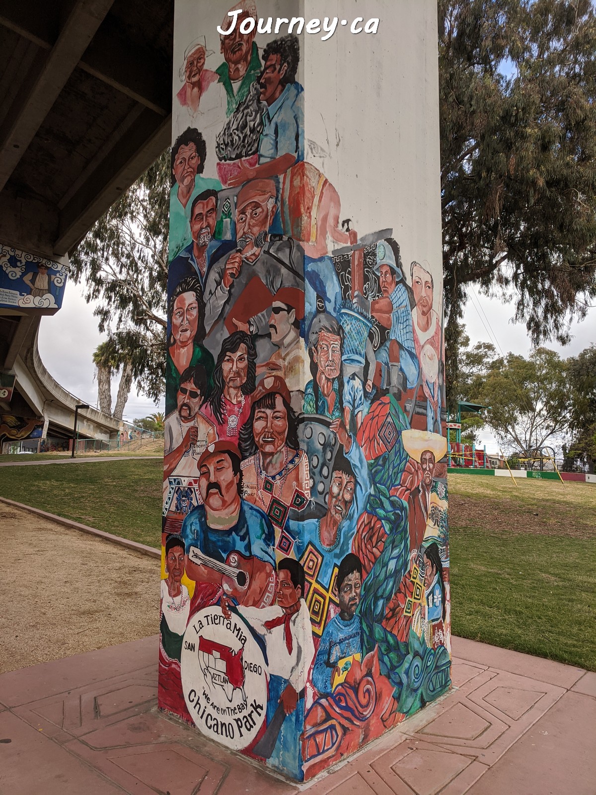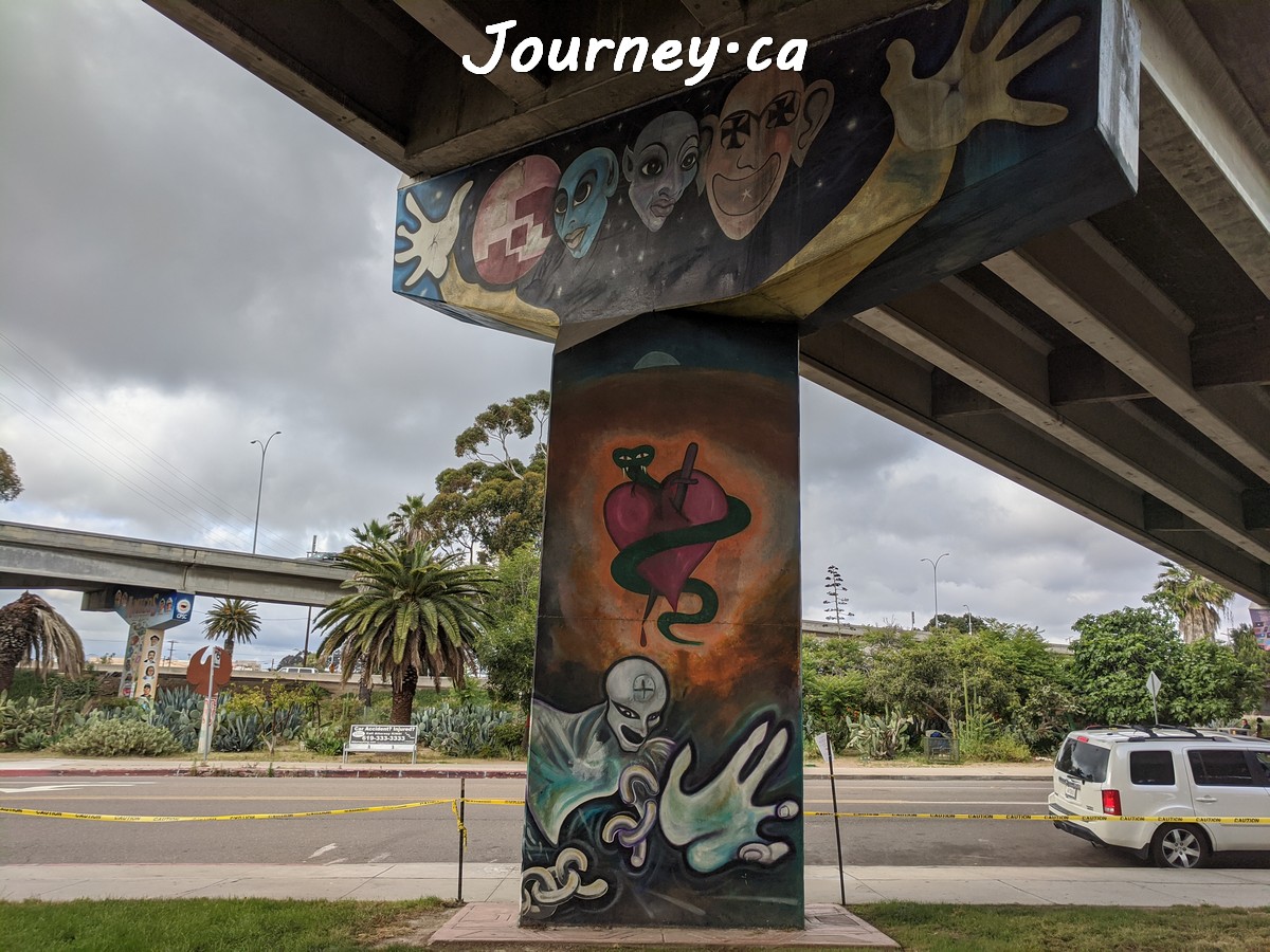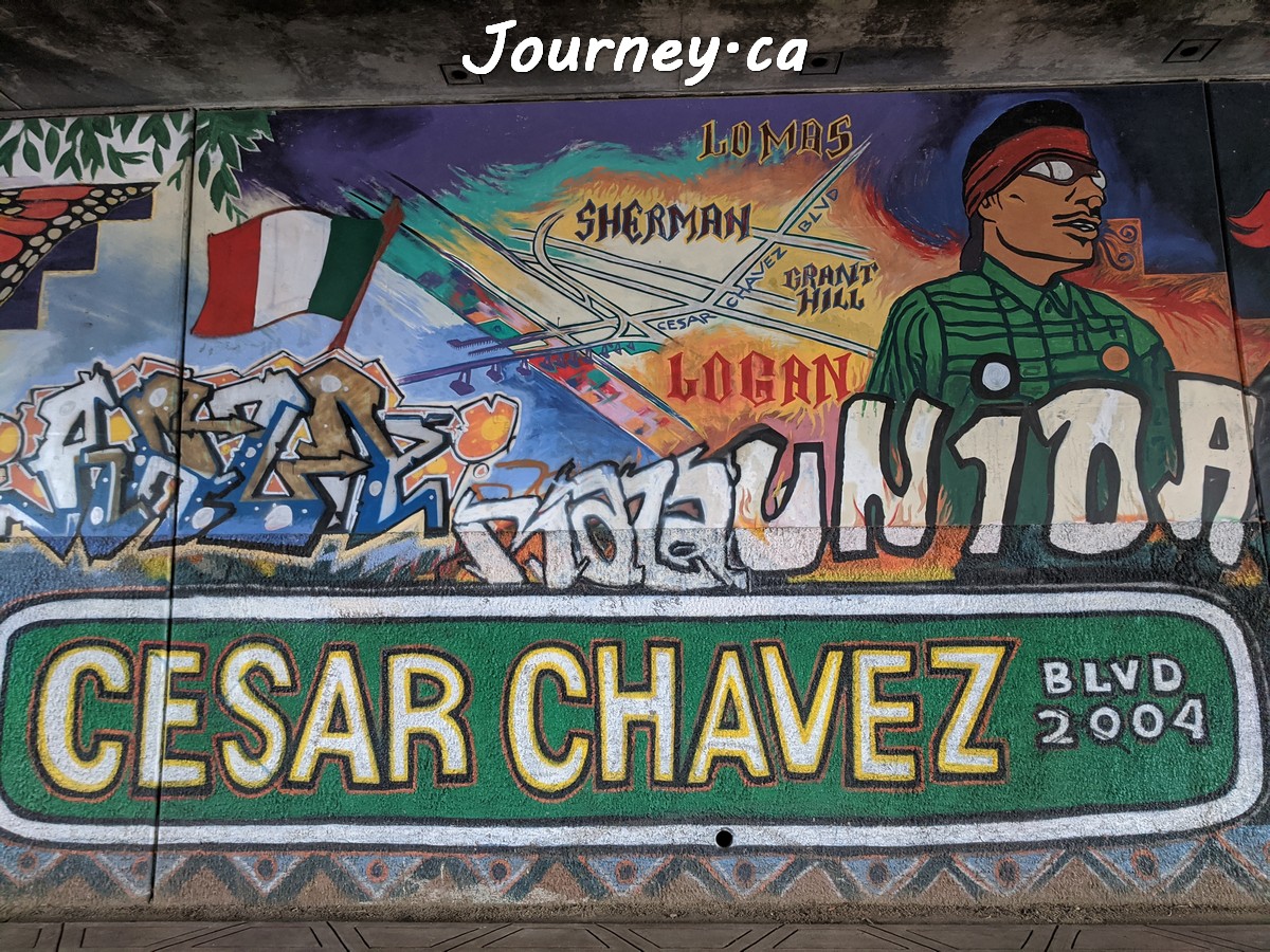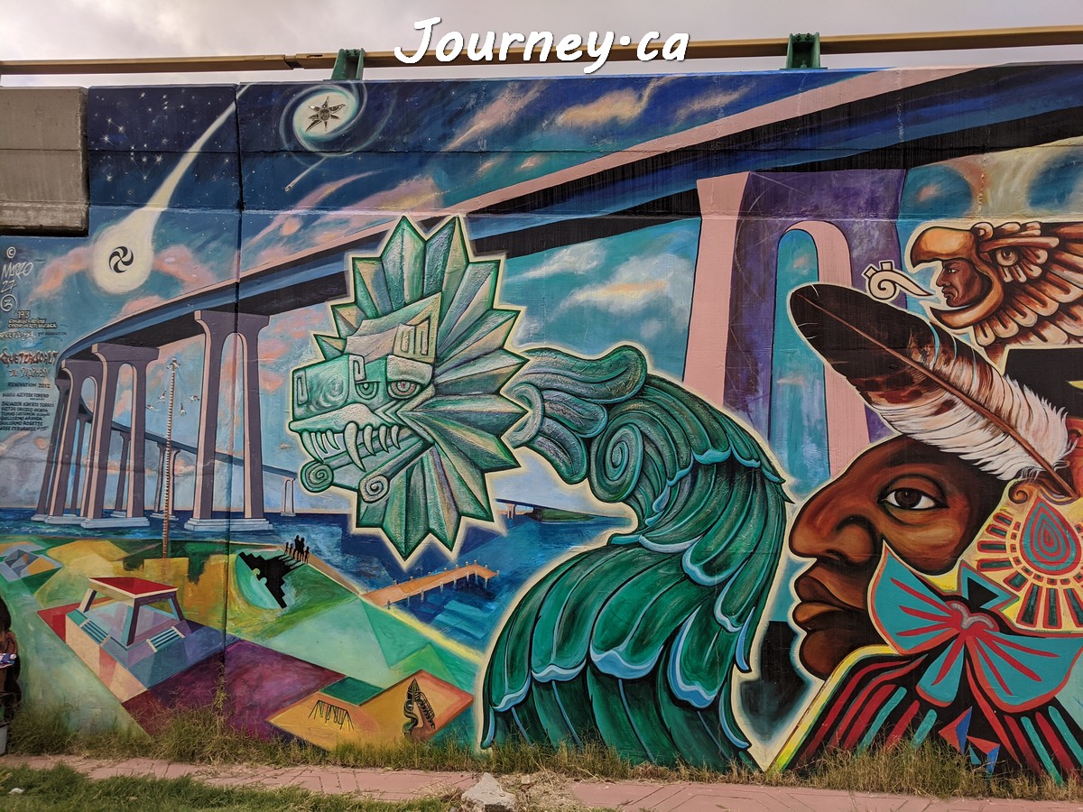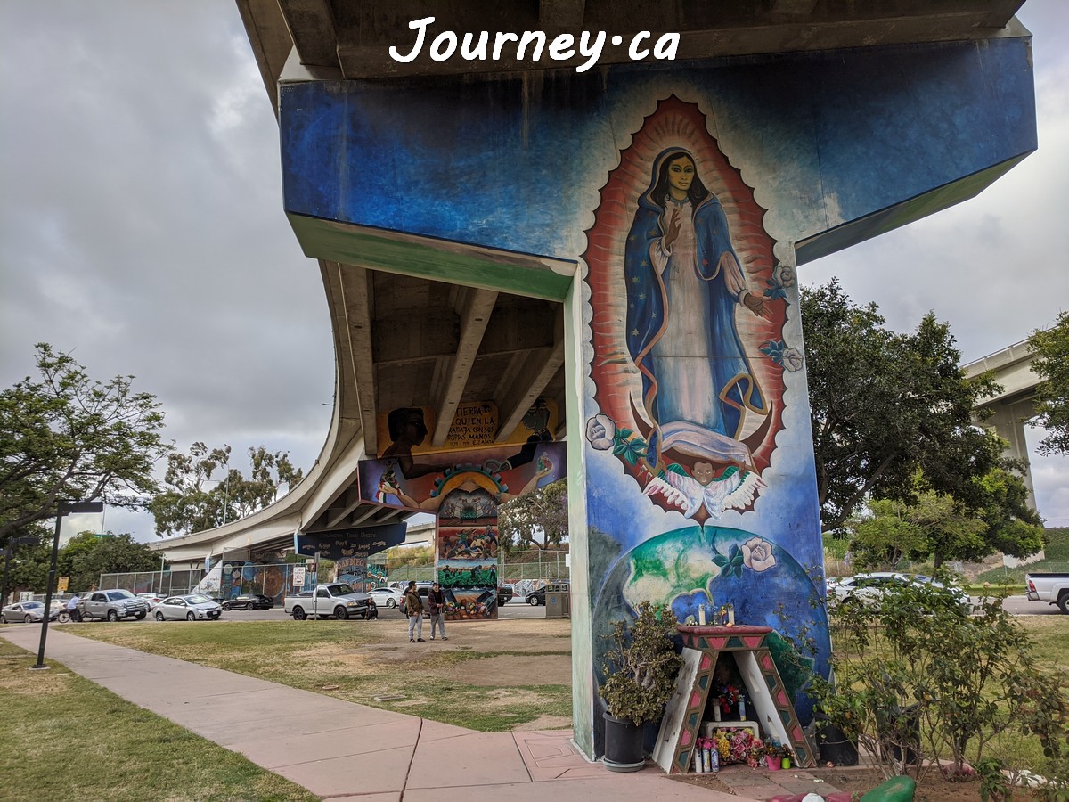 Chicano Park(齐卡诺公园)是美国国家历史地标之一,位于加州圣迭戈-科罗纳多大桥桥头下,以显眼的大幅壁画出名,壁画内容主要反映墨西哥、拉美以及奇卡诺文化。这里是墨裔美国人(奇卡诺人)争取平权的一个标志性地点。