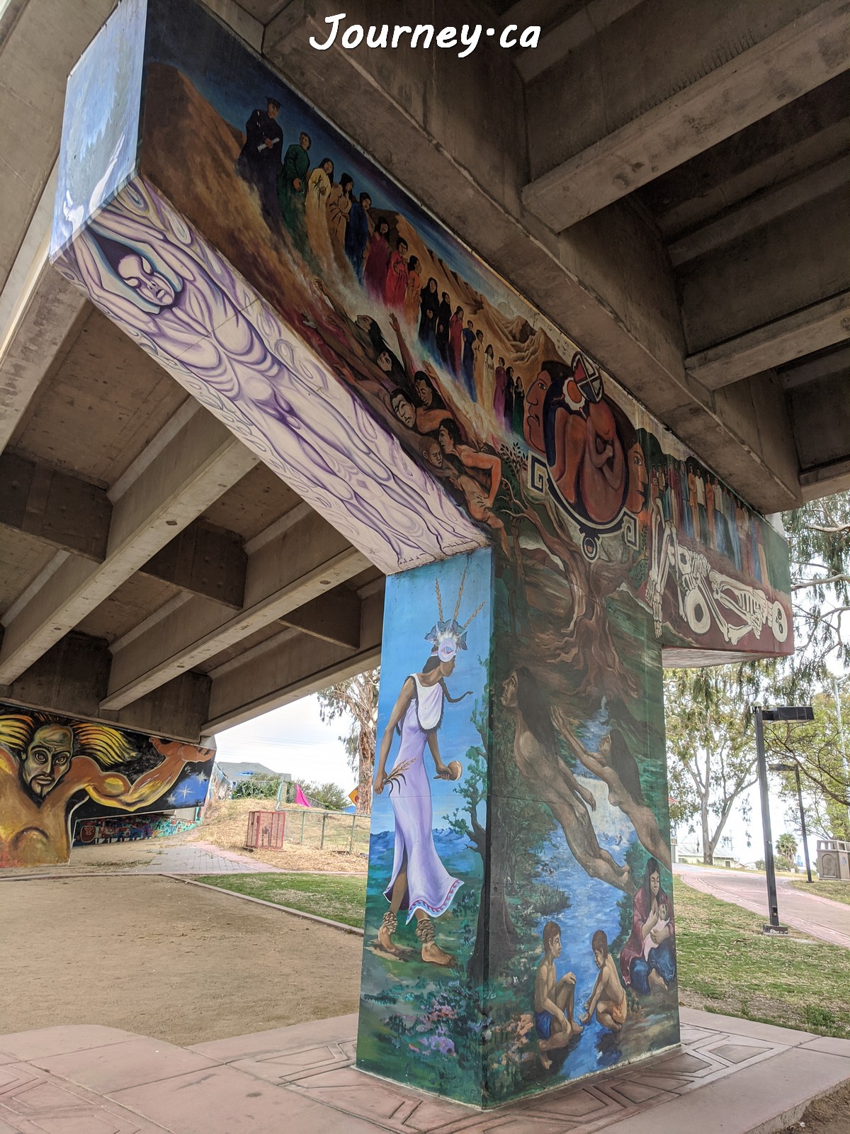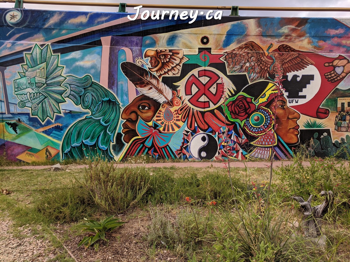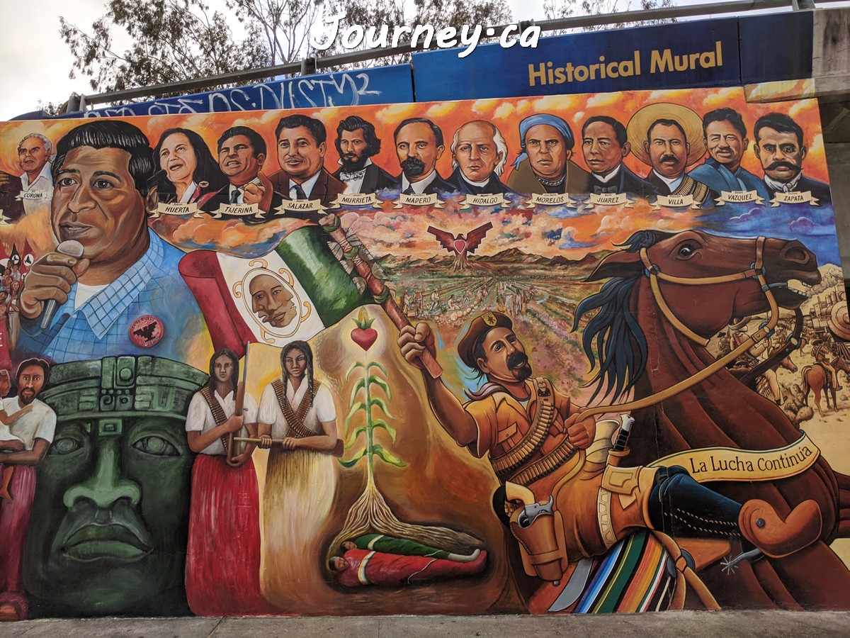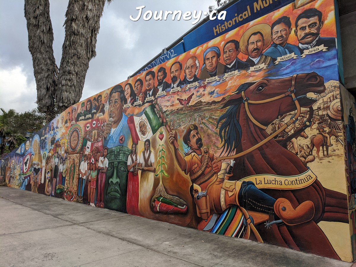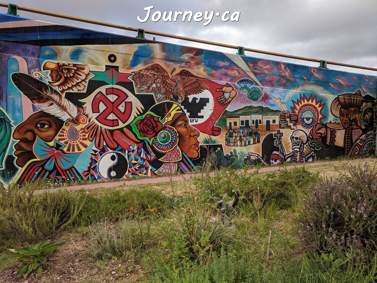Chicano Park(齐卡诺公园)是美国国家历史地标之一,位于加州圣迭戈-科罗纳多大桥桥头下,以显眼的大幅壁画出名,壁画内容主要反映墨西哥、拉美以及奇卡诺文化。这里是墨裔美国人(奇卡诺人)争取平权的一个标志性地点。
