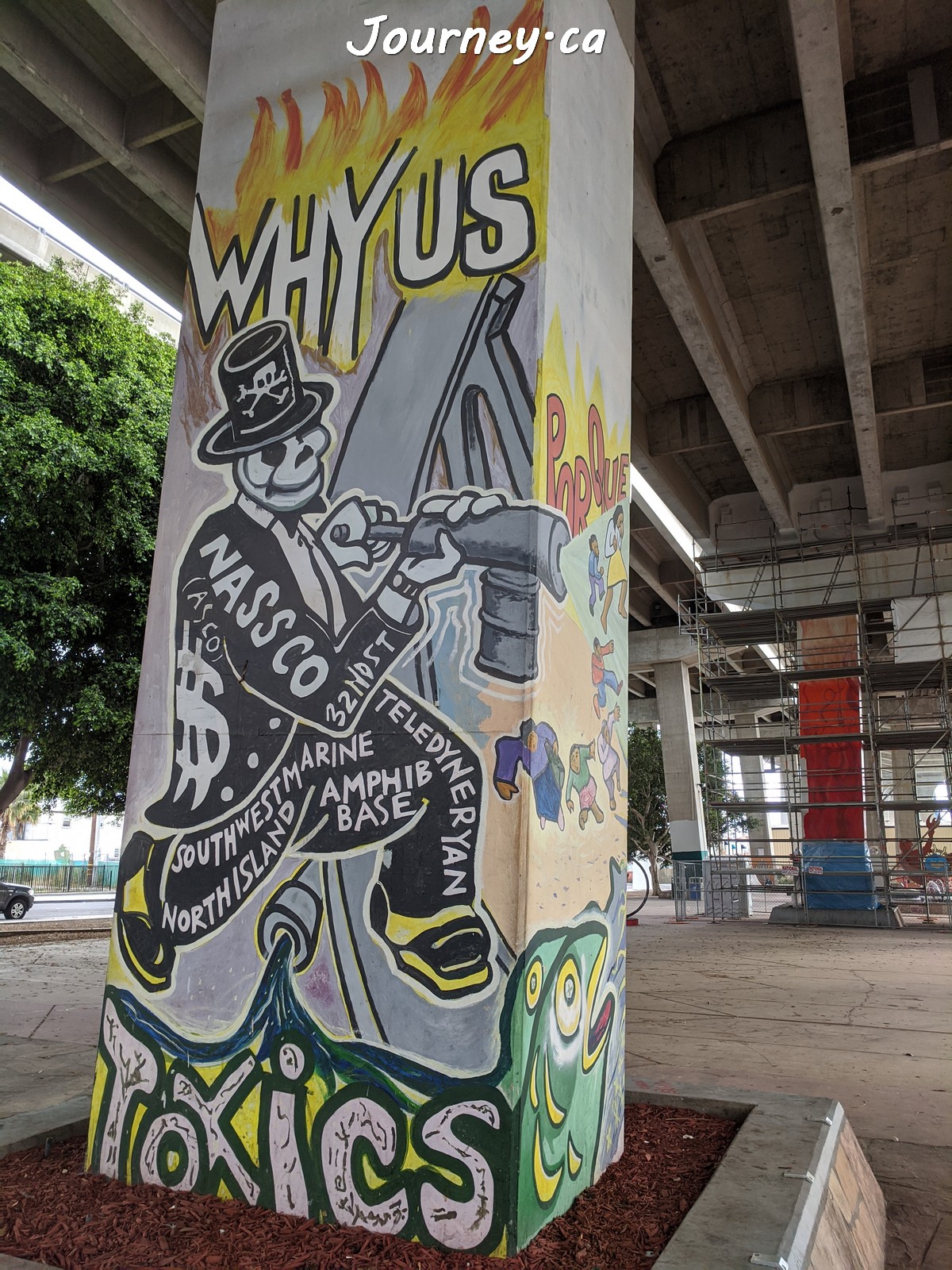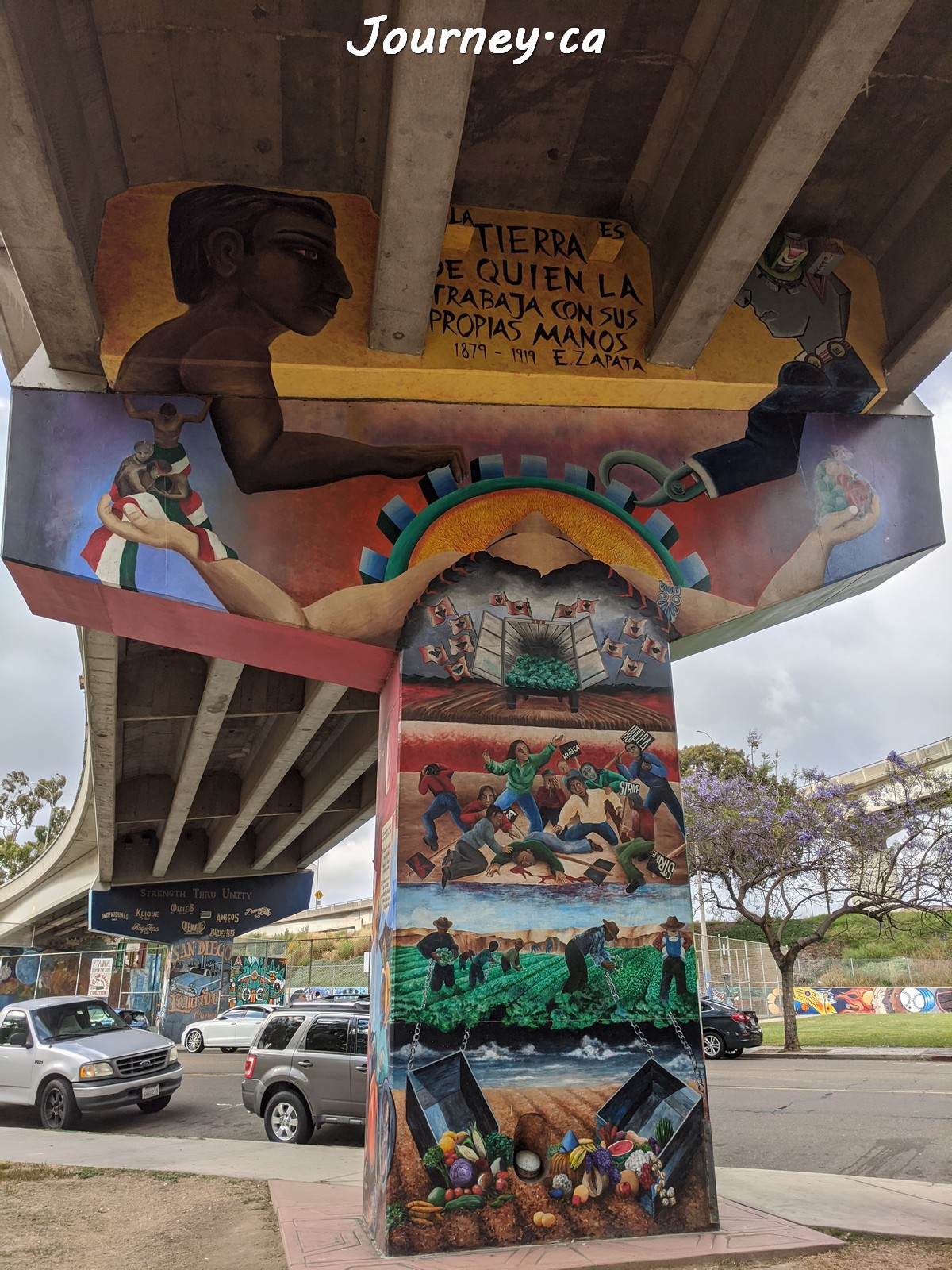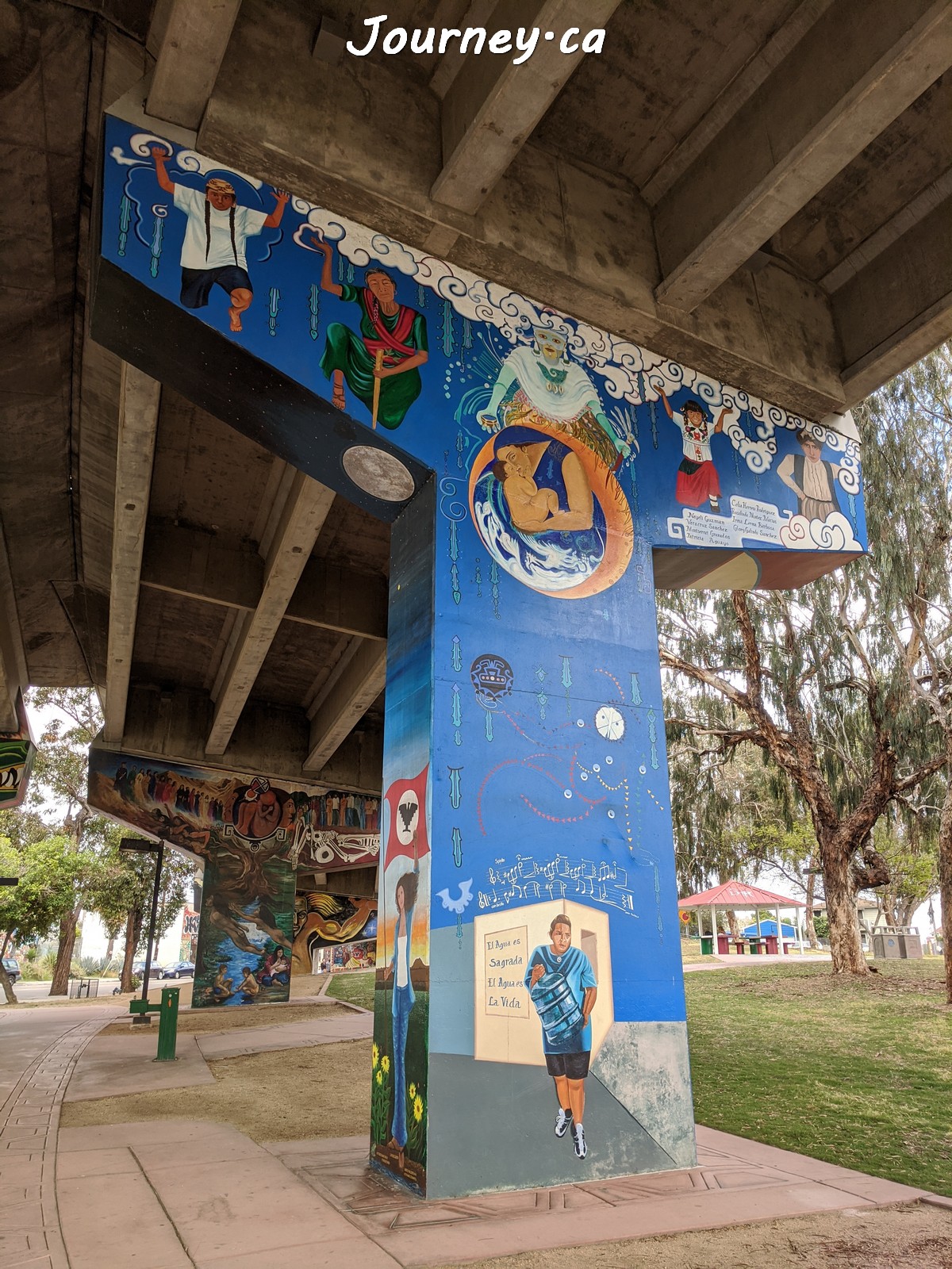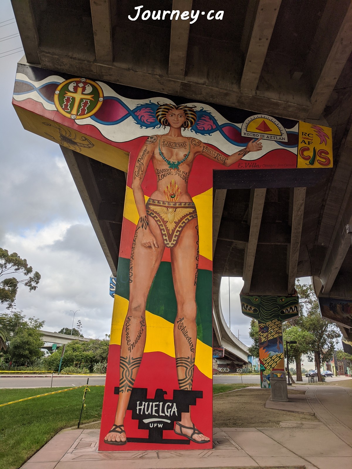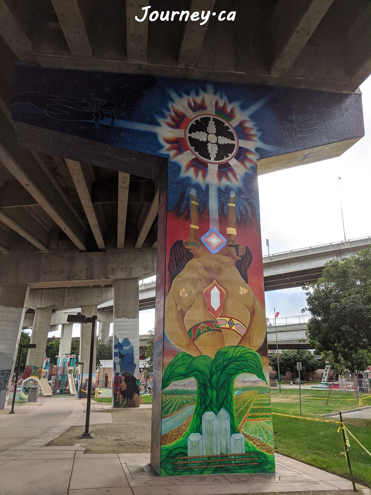 Chicano Park(齐卡诺公园)是美国国家历史地标之一,位于加州圣迭戈-科罗纳多大桥桥头下,以显眼的大幅壁画出名,壁画内容主要反映墨西哥、拉美以及奇卡诺文化。这里是墨裔美国人(奇卡诺人)争取平权的一个标志性地点。