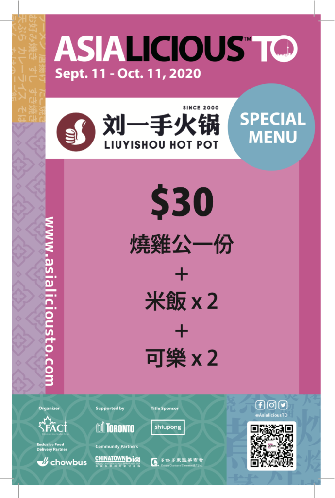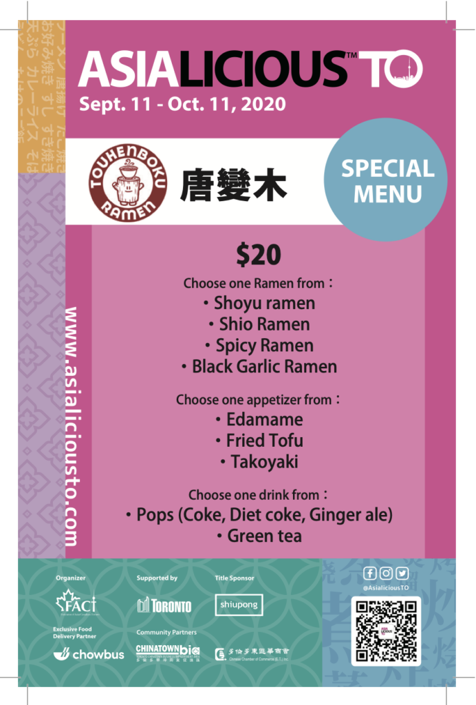 Patrons can explore Toronto’s Asian cuisine at participating venues with promotional deals priced at $10, $20, $30.