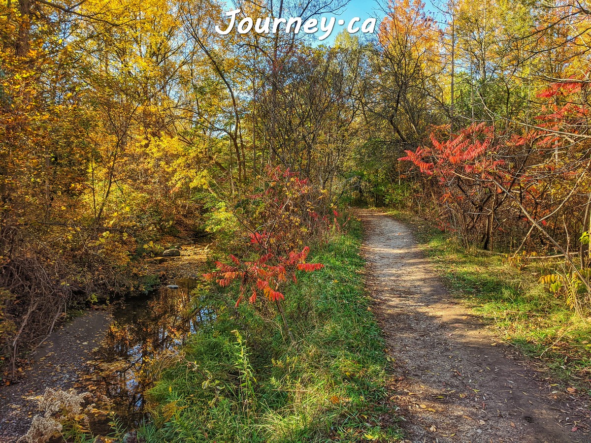 Newtonbrook Creek是加拿大第一大城市多伦多最不著名旅游景点之一,连很多伦多人都没听说过这个地方,基本只有周边居民来此散步、遛狗或者骑行。秋天的牛顿布鲁克溪景色尤其迷人,各种的植被色彩缤纷,绿色、黄色、橙色、红色争奇斗艳,还有不少野生动物跳来跳去。