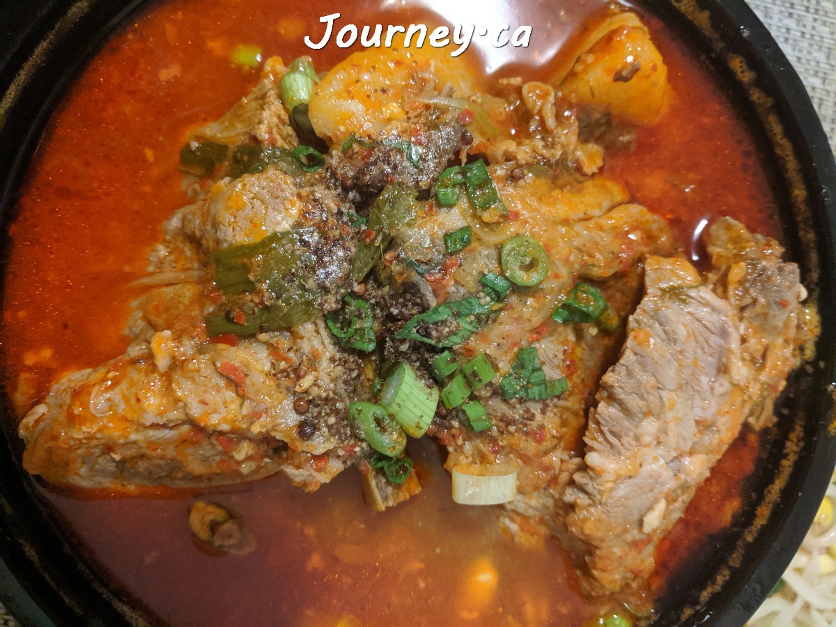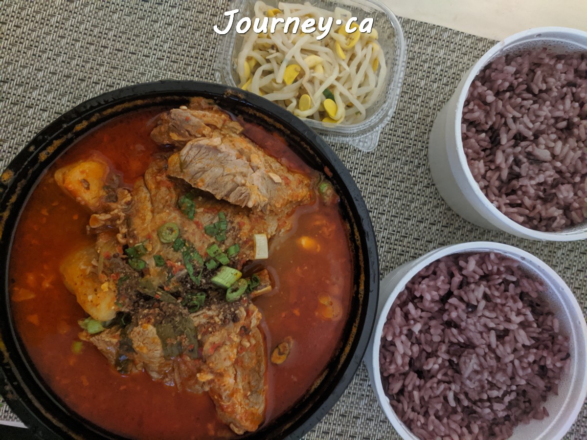 Kamjatang韩国排骨汤:3星好评。味道还不错,但汤头咸而油腻,无法饮用。肉量还好,但不易剥离食用,因为骨头都是大块整体,难拆解。