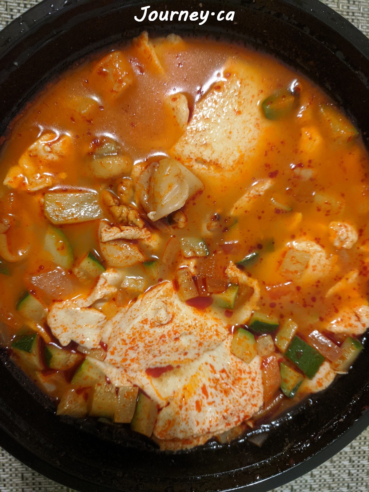 Soon To Fu海鲜豆腐汤:3星好评。大量的豆腐和黄瓜,海鲜除了有一大只带壳青口外就只是少量的冷冻海产:几只迷你青口、鱿鱼粒和一两只迷你虾仁。