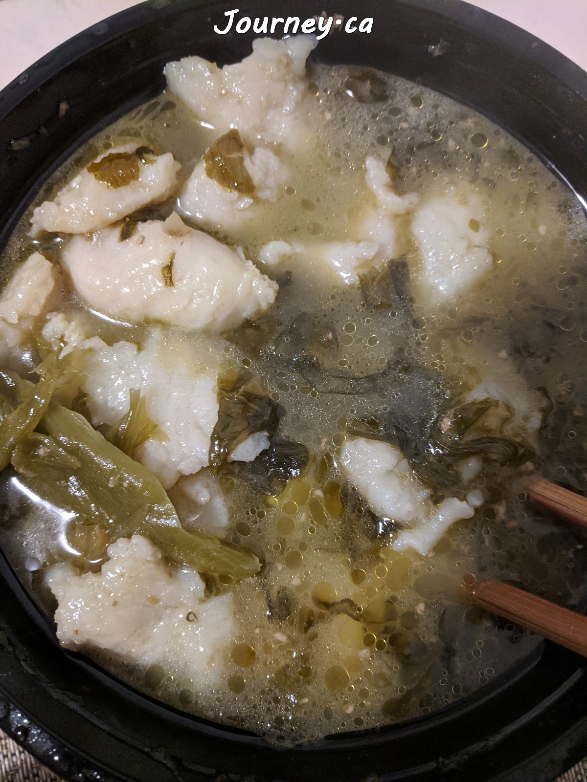 酸菜鱼片:4星好评。冰冻鱼排制作的,部分鱼肉还未完全煮熟,肉色还是粉红色的。不像中国都是现杀的鱼,但好处是完全没有鱼刺。