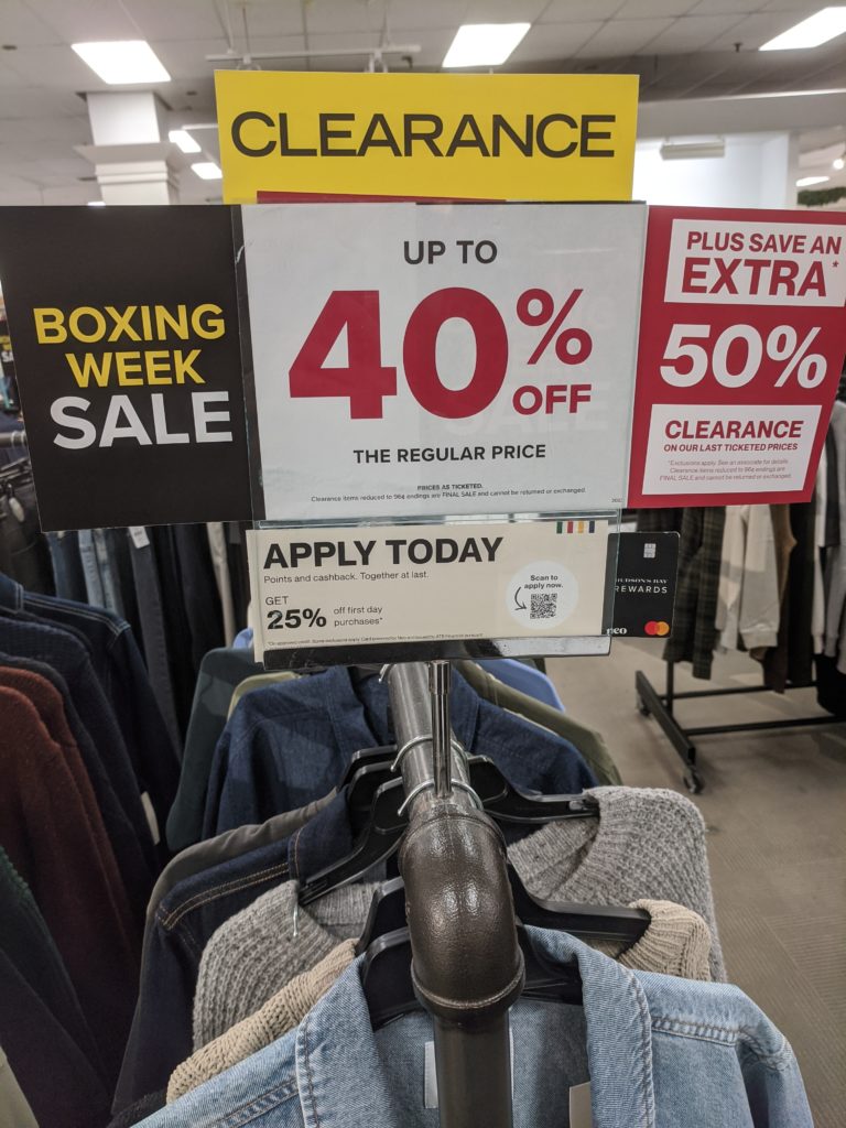 The Bay感觉快要倒闭了,打折也很厉害,清仓货额外再减25%或40%。鞋子都是最低价再减40%,例如这双Reebok原价$120,现价$57.6,并且不是Final Sale,可以退换货,说明还有降价空间。