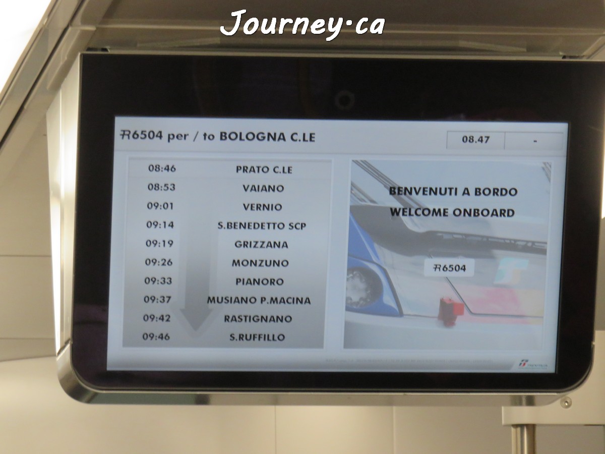 车上有清晰的显示屏显示到站信息,但如同意大利所有区间火车没有Wi-Fi。