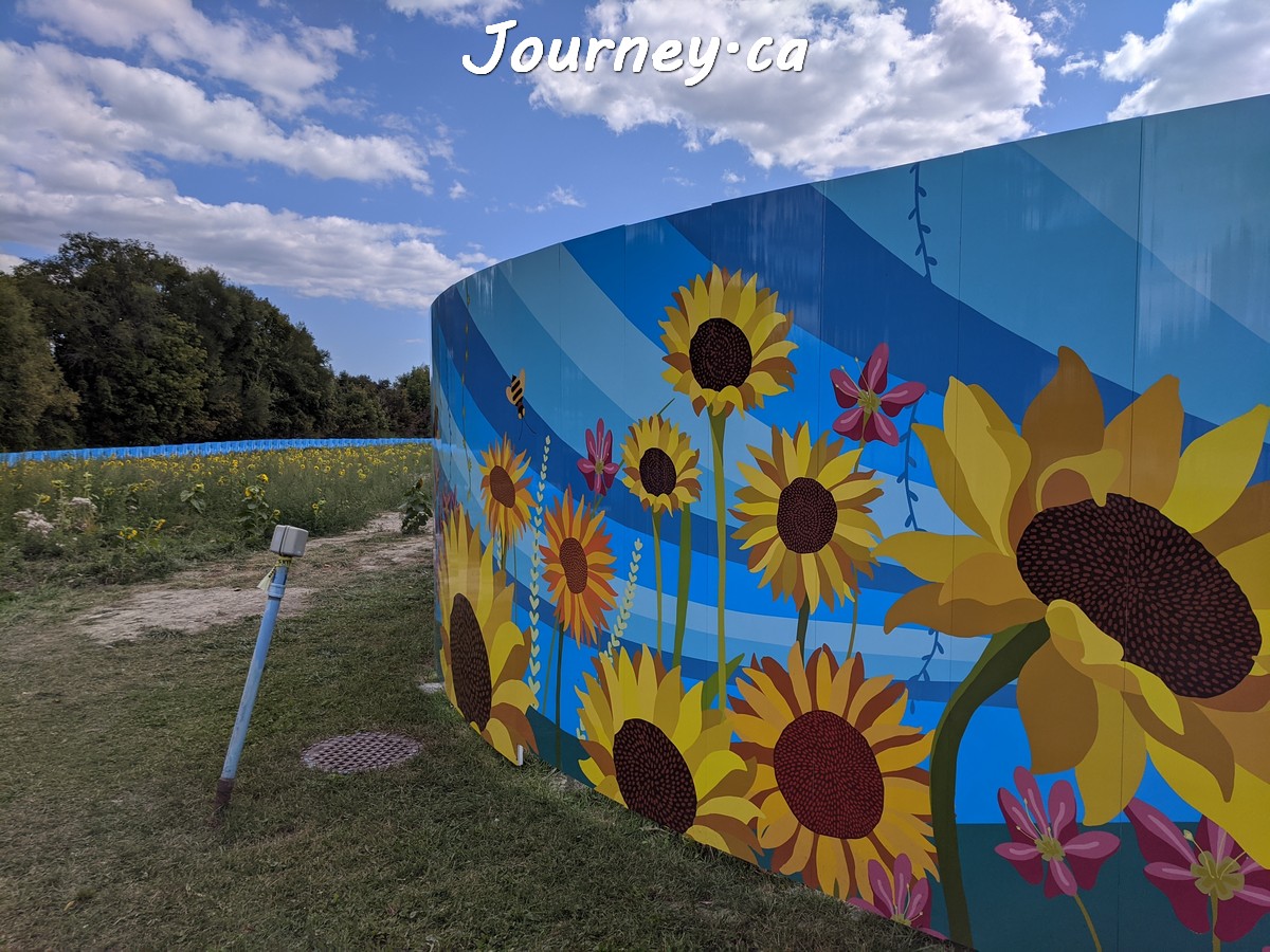 Lakeview Village是加拿大安大略省密西沙加市(多伦多国际机场所在城市)一个滨水新城开发项目,包括住宅、商用、购物、休闲多用途,计划容纳约2万名居民,规模庞大。目前项目刚刚破土动工,大片闲置空地就被用作公共艺术展示空间,包括最吸睛的百万向日葵花田。免费参观,地点就在密西沙加市Hydro Road道路周边,往湖边方向找就能看到。密西沙加市目前还有住2晚送100加元促销活动呢,点这里读详情。
